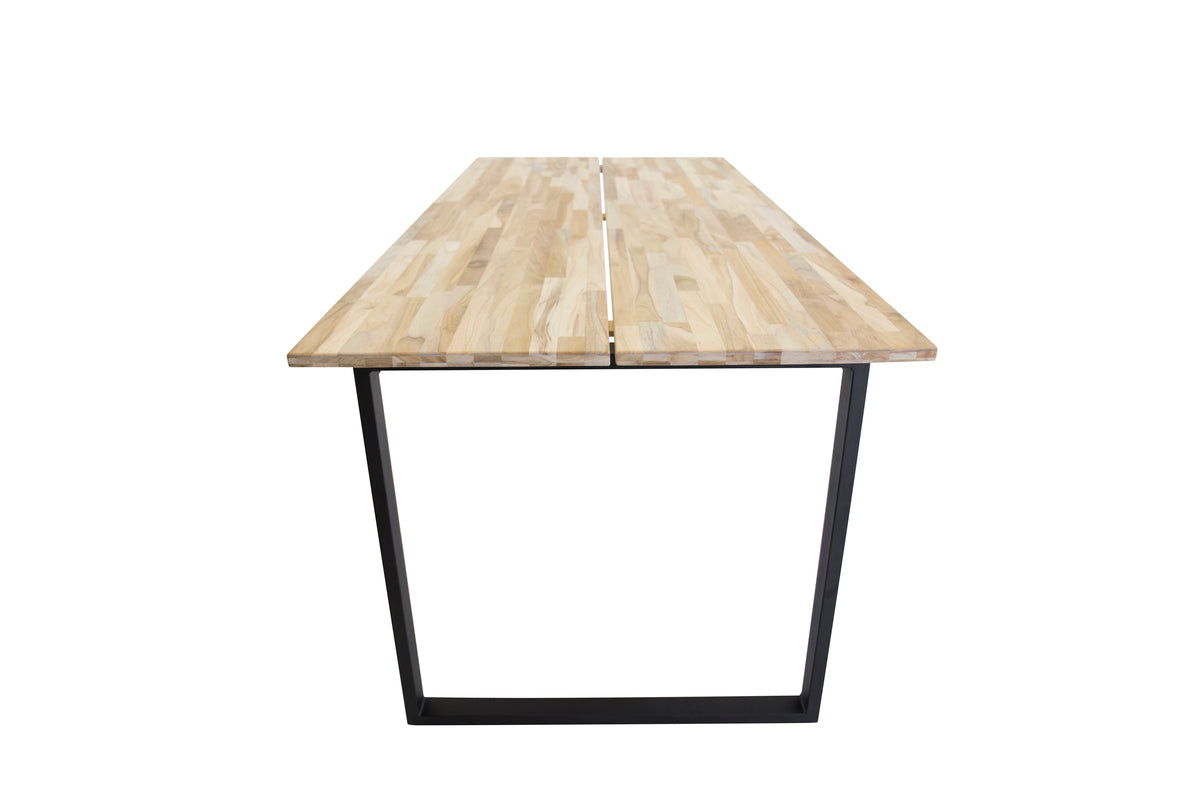 Möblera stuen eller køkkenet med en klassisk stil, der aldrig går af mode! Spisebord Cirebon har en lys bordplade i teak, der er letmeleret, og et understel i sort metal. Designet har indflydelse fra Skandinavien med lige, luftige former. Her får du et neutralt og charmerende spisebord, der passer ind i de fleste hjem og husholdninger. "Klæd op eller klæd ned" din spisegruppe ved at vælge din type spisebordsstole og sæt et personligt præg på indretningen!