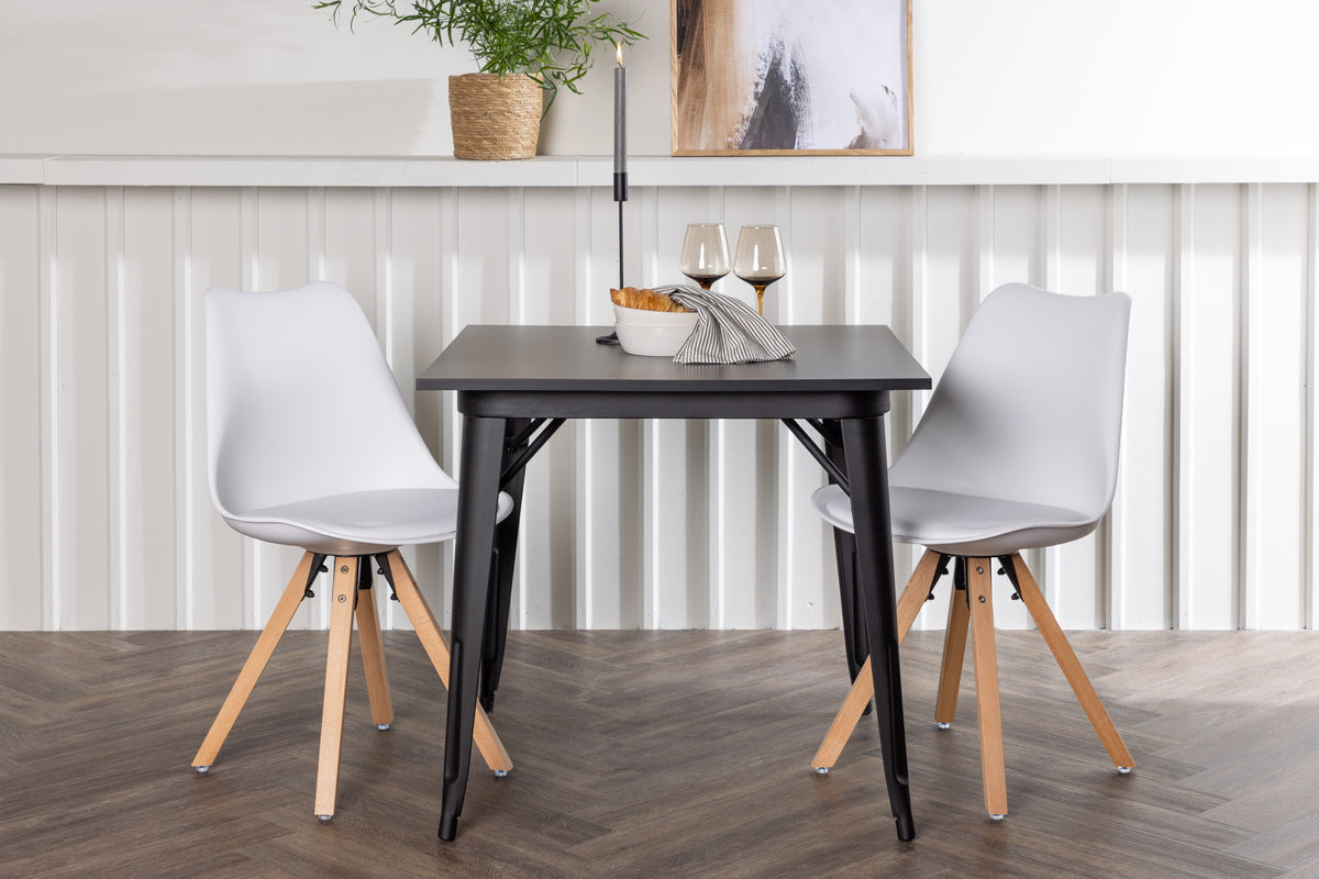 Rektangulært spisebord 80 x 80 Sort + Spisebordsstol 2-pak Hvid