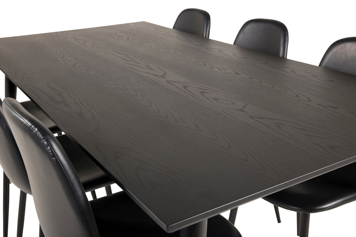 Rektangulært spisebord 180 x 90 Sort + Spisebordsstol 2-pak Sort