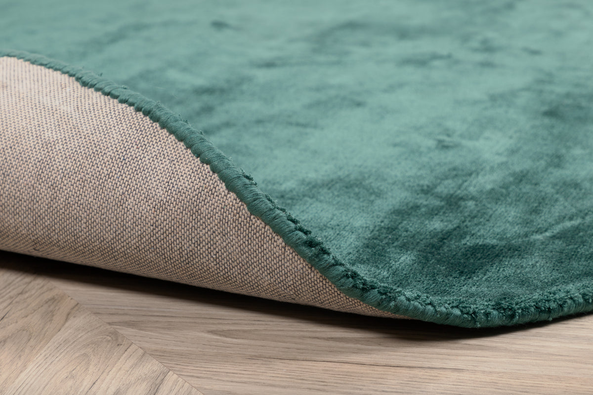 Moderne, elegant og slidstærk – en drøm af en måtte, ganske enkelt! Hop med på trenden med et viskosetæppe, som er alle indretningsgurueres drøm lige nu. I tæppeserien Indra finder du flere håndvævede viskosetæpper i forskellige farver og størrelser, fremstillet af viskose på oversiden og bomuld på undersiden. Denne runde skønhed i en luksuriøs skovgrøn nuance er perfekt under sofabordet eller i soveværelset! Det slidstærke materiale har en levende glans, der giver en luksuriøs følelse til rummet. Indret dit hjem med et silkeblødt farvepust!