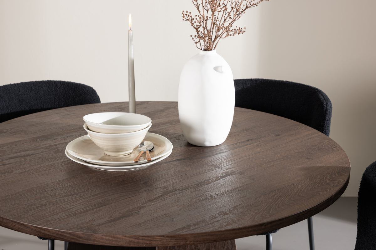 Rundt spisebord 110 Mocca + Spisebordsstol 2-pak Sort