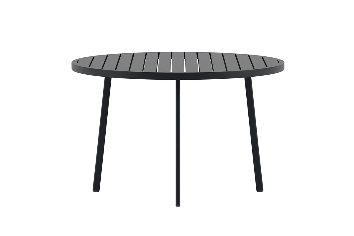 Giardini er et rundt spisebord med en diameter på 120 cm, perfekt til at samle familie og venner omkring på terrassen. Det sorte bord har et stilrent og moderne design med ribbet bordplade, der giver et elegant udtryk. Takket være sin generøse størrelse er der masser af plads til måltider og samvær, samtidig med at formen gør det nemt at placere stole rundt om. Giardini er et tidløst bord, der passer lige så godt til hverdag som til fest.