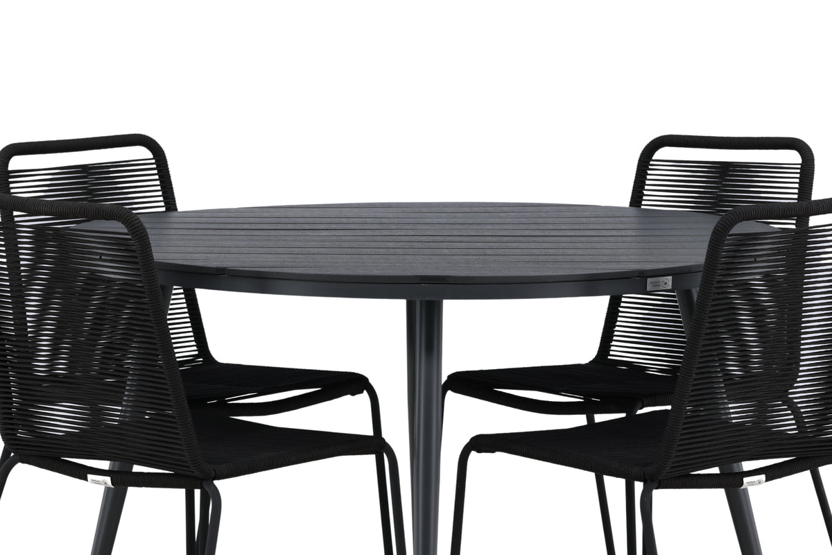 Break & Lindos Rundt Spisebord ø120 Sort + Spisebordsstole Sort