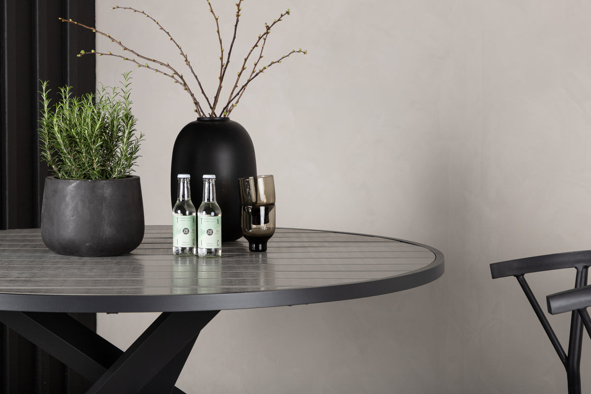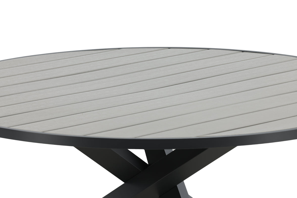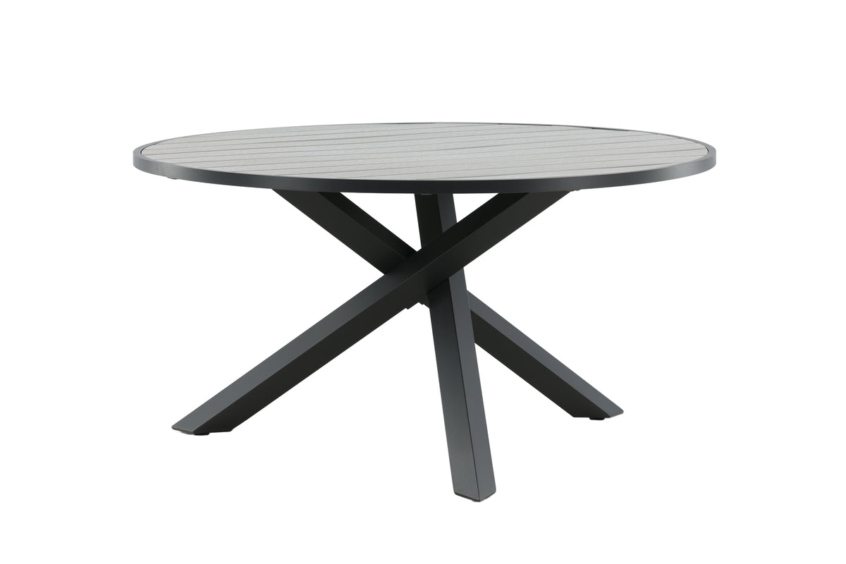 Et rundt spisebord er perfekt til dig, der ønsker at skabe en hyggelig, social og indbydende stemning til udestuen eller terrassen til sommer! Her kan samtaler og latter flyde frit omkring et stilrent spisebord i klassisk look fra serien Parma. Spisebordet har en bordplade i grå aintwood og et krydslignende understel i sort metal – Gør jer klar til udelivet og lad tiden her blive dagens højdepunkt!