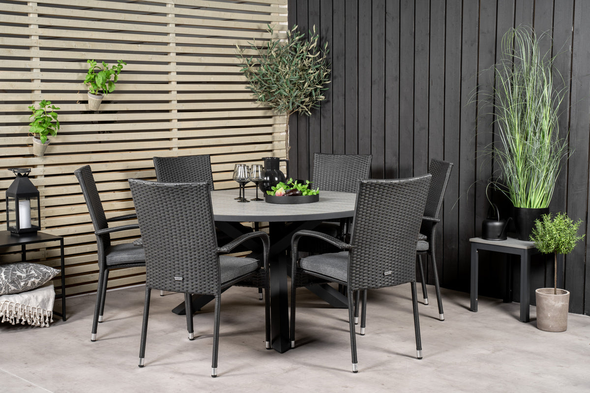 Lad denne smukt matchede spisegruppe med moderne følelse blive et naturligt samlingssted på terrassen. Spisestole Anna har god komfort, og spisebord Parma gør, at du slipper for at bekymre dig om, hvorvidt der er plads til alle.