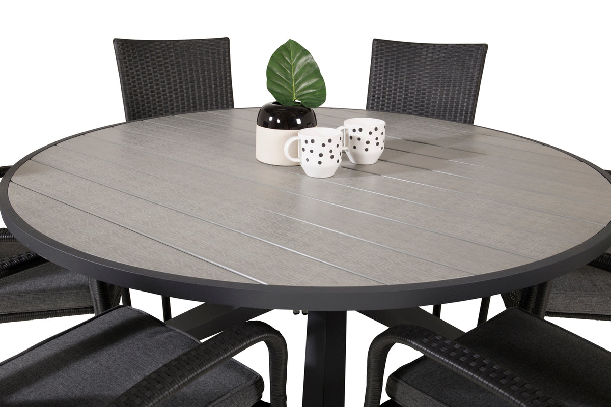 Parma & Anna Rundt Spisebord ⌀140 Mørkegrå + Spisebordsstole 2-pak Sort
