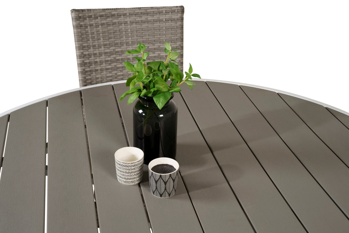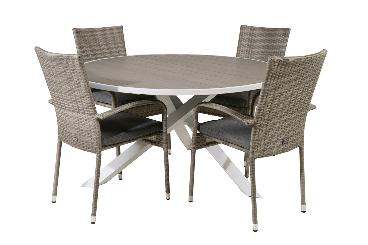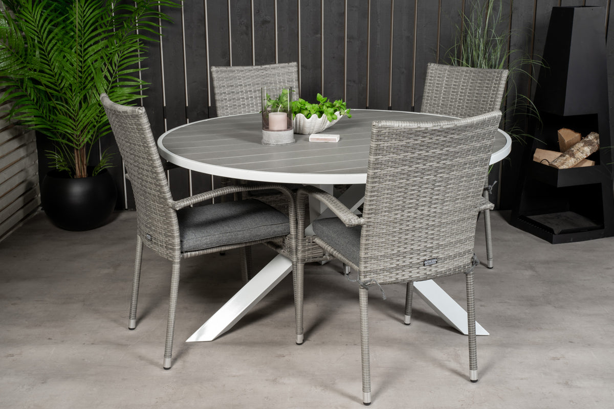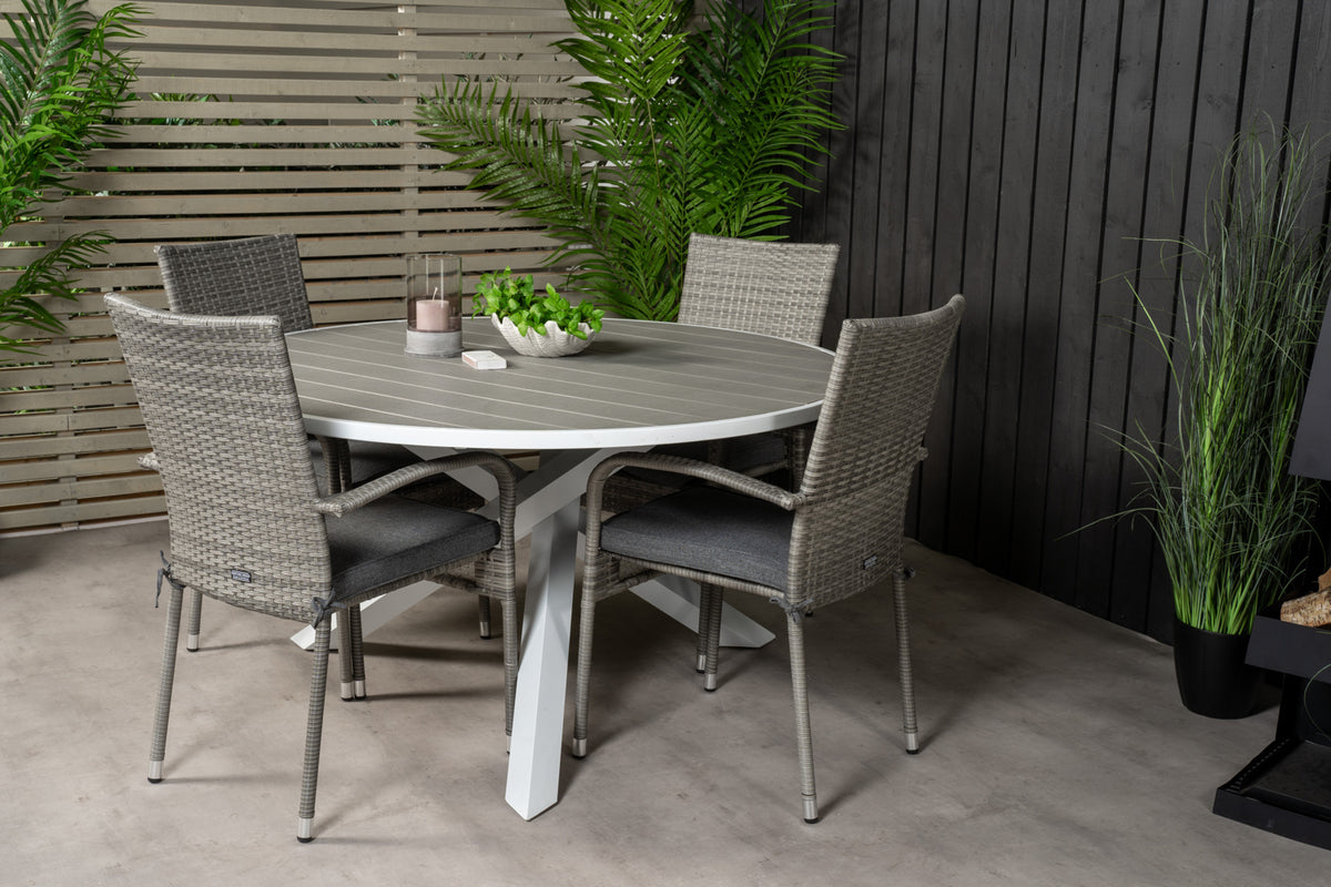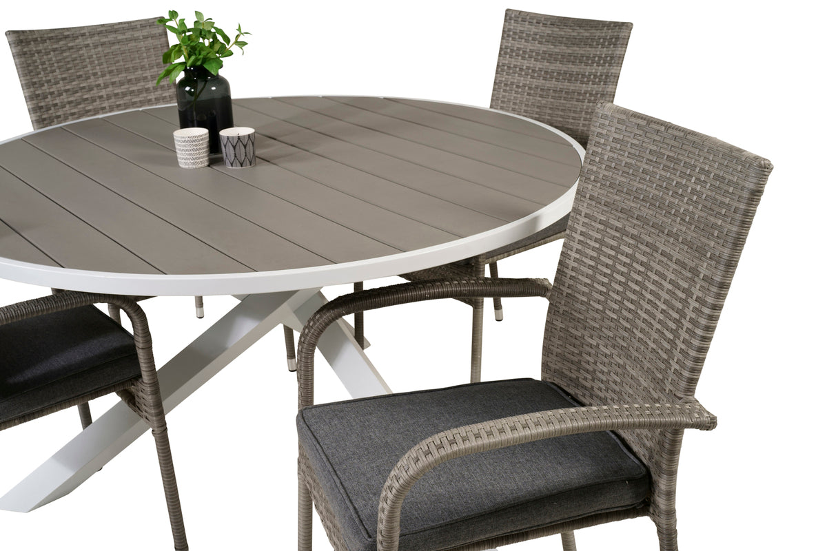 Parma & Anna Rundt Spisebord ø140 Hvid + Spisestole Grå