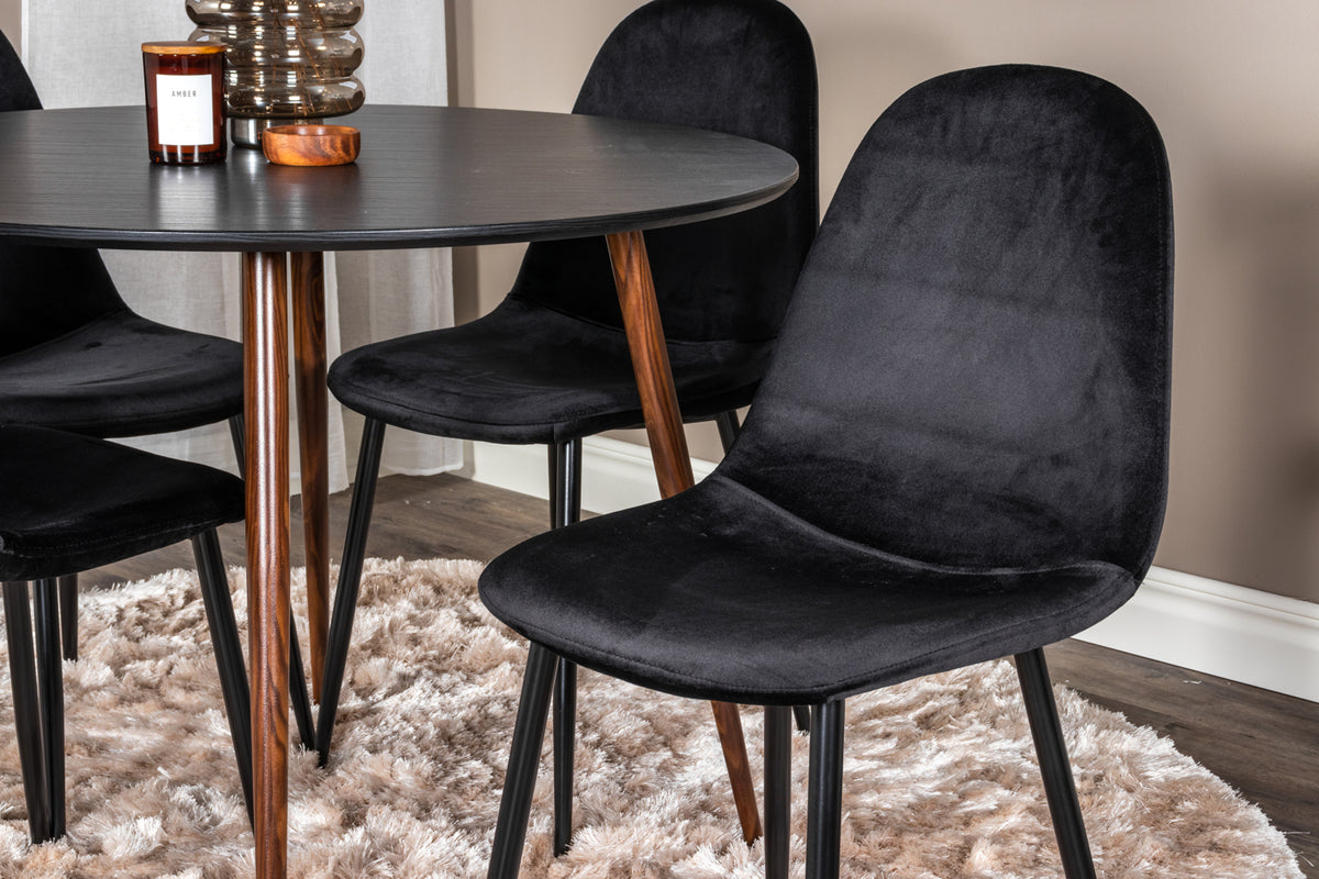 Rundt spisebord 100 Sort + Spisebordsstol 2-pak Sort