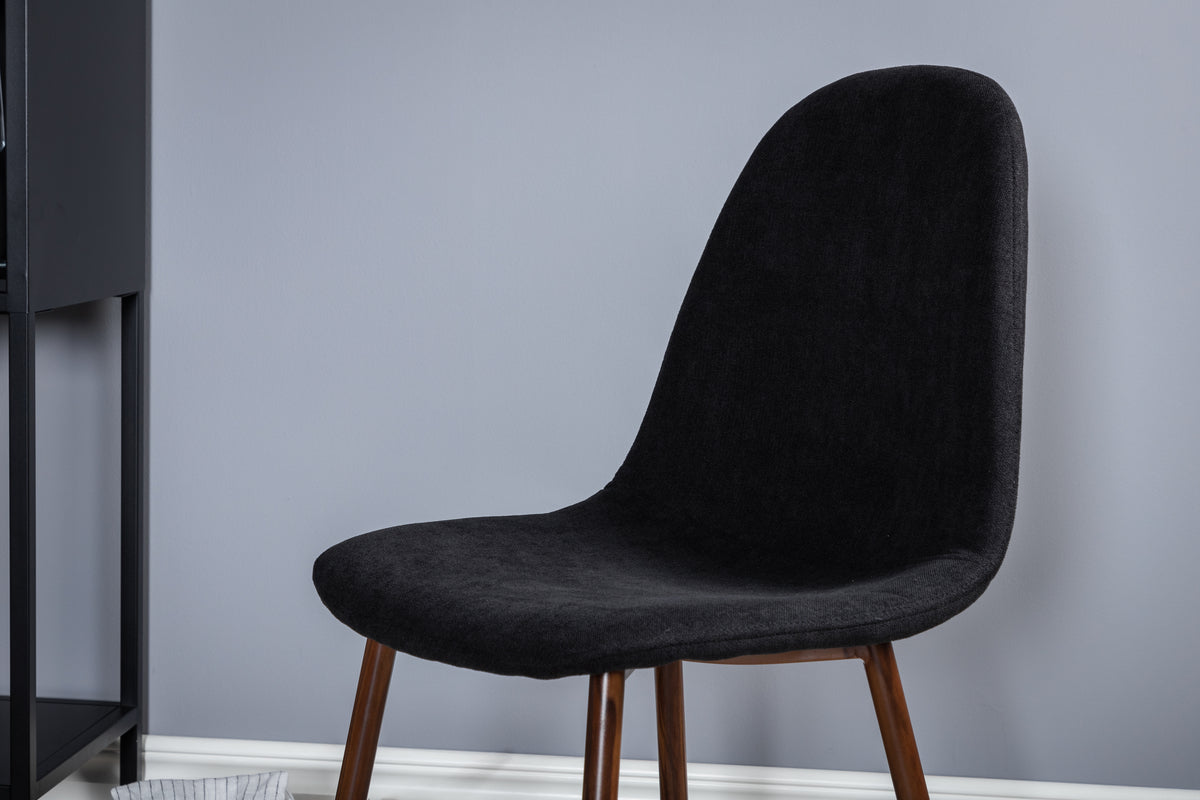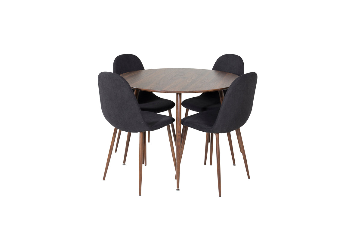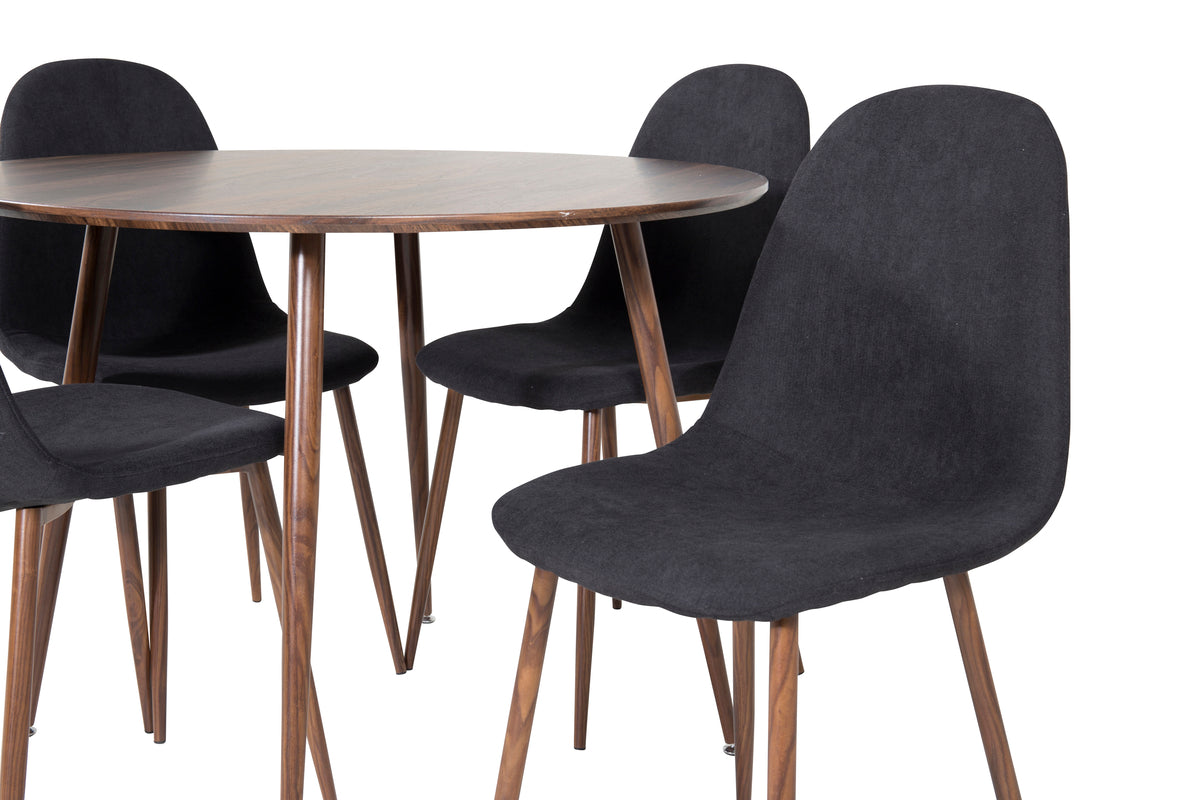 Rundt spisebord 100 valnød + Spisebordsstol 2-pak sort