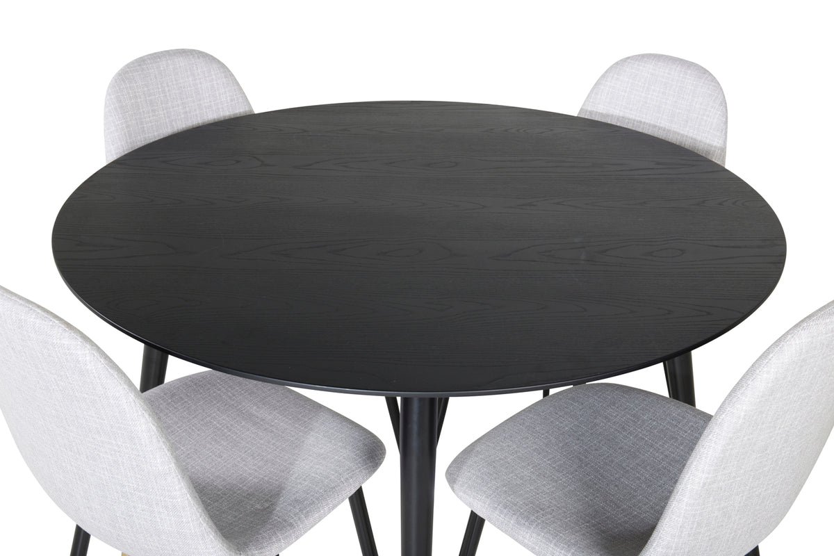 Rundt spisebord 115 Sort + Spisebordsstol 2-pak Grå