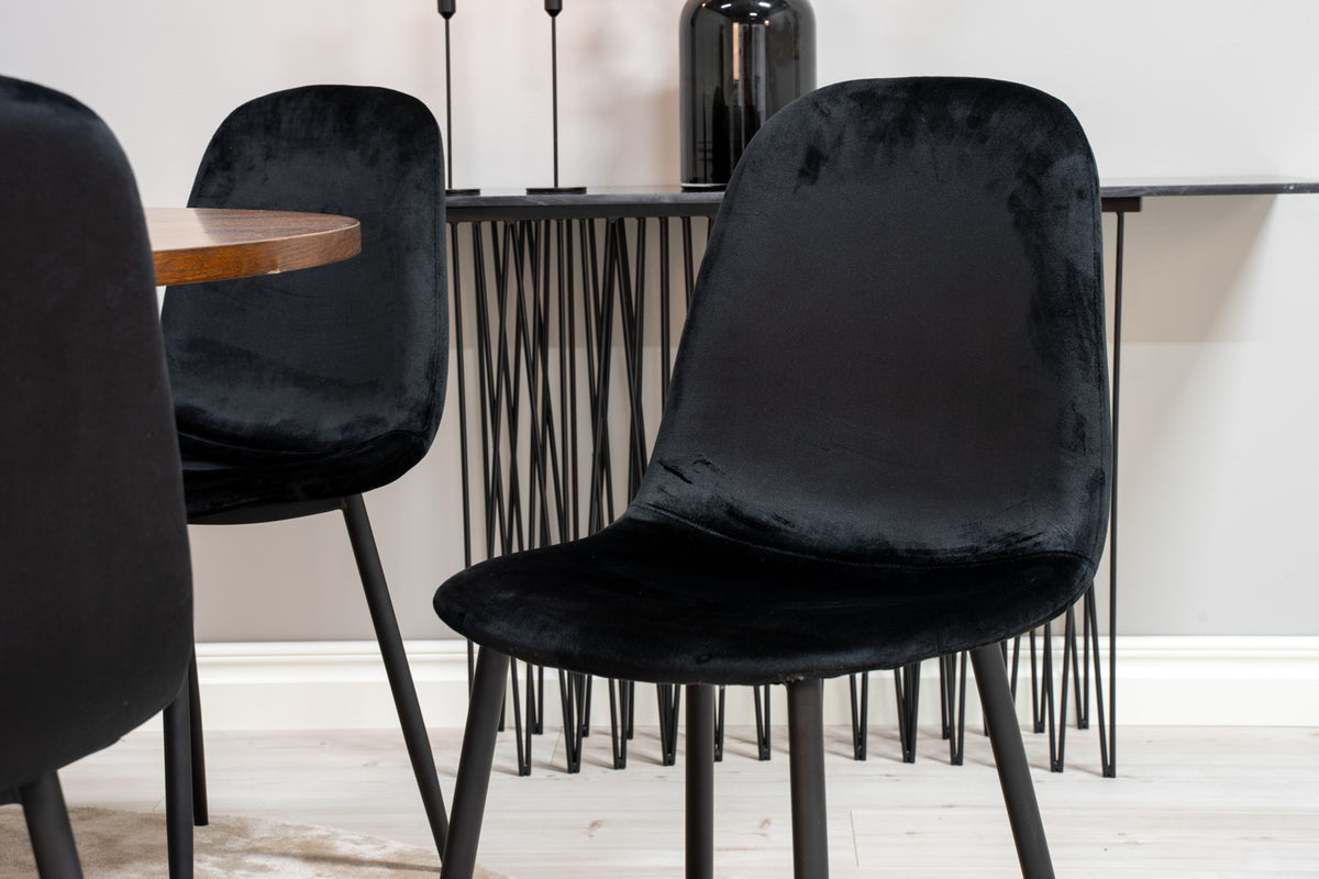 Rundt spisebord 140 Brun + Spisestol 2-pak Sort