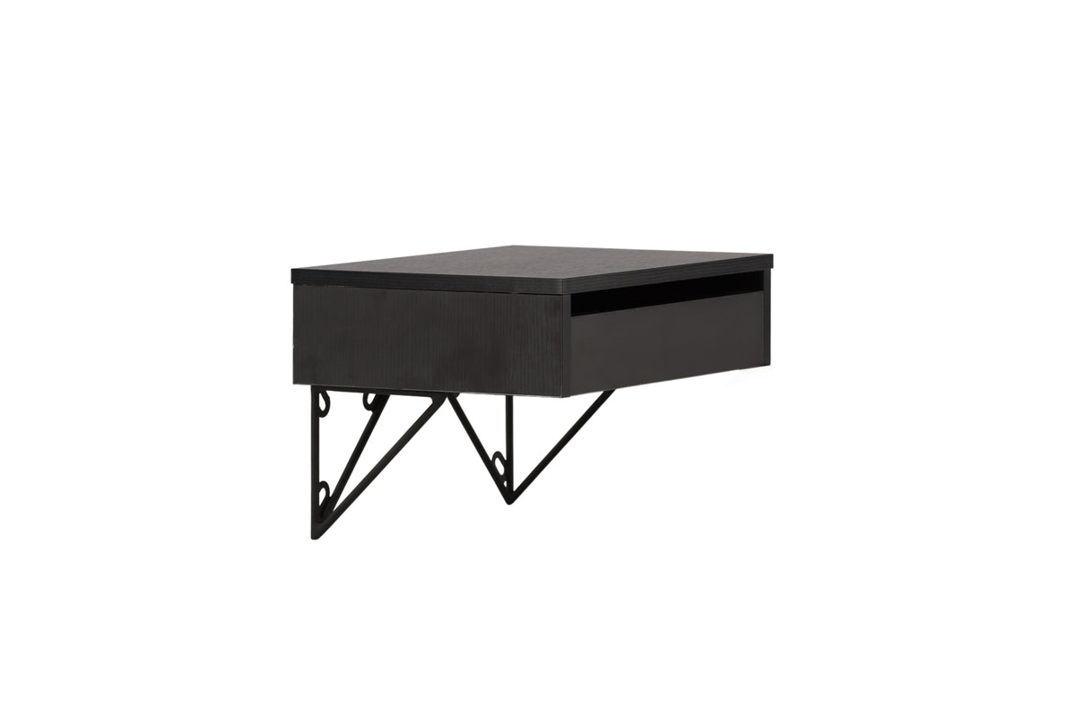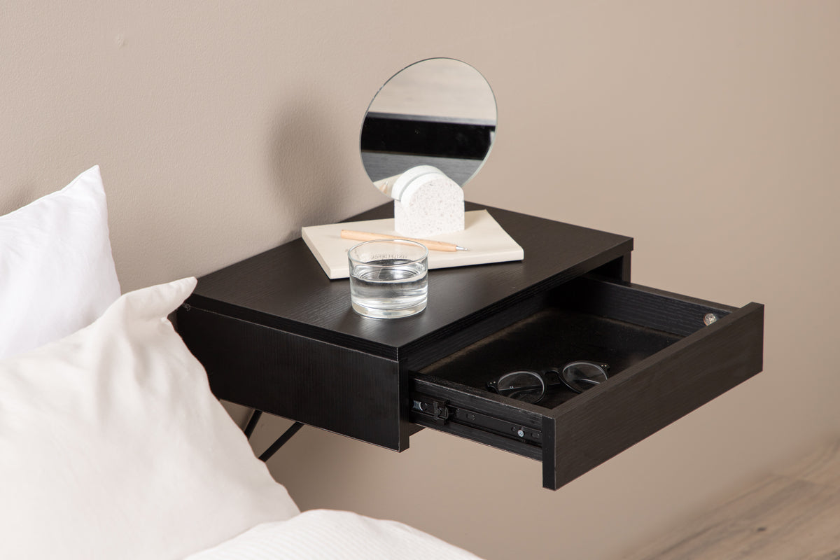 Et charmerende sidebord, der er perfekt til at hænge på væggen ved siden af sengen, sofaen eller hvorfor ikke i hallen! Dette smagfulde sidebord tilhører serien Holy, som tilbyder flere forskellige sideborde i en variation af farver. Fremstillet i en røget sort MDF med en sort stålramme og har en skuffe til skjult opbevaring. Den jordnære farve og dekorative ophængning giver dig et iøjnefaldende sidebord, der hurtigt pryder rummet!