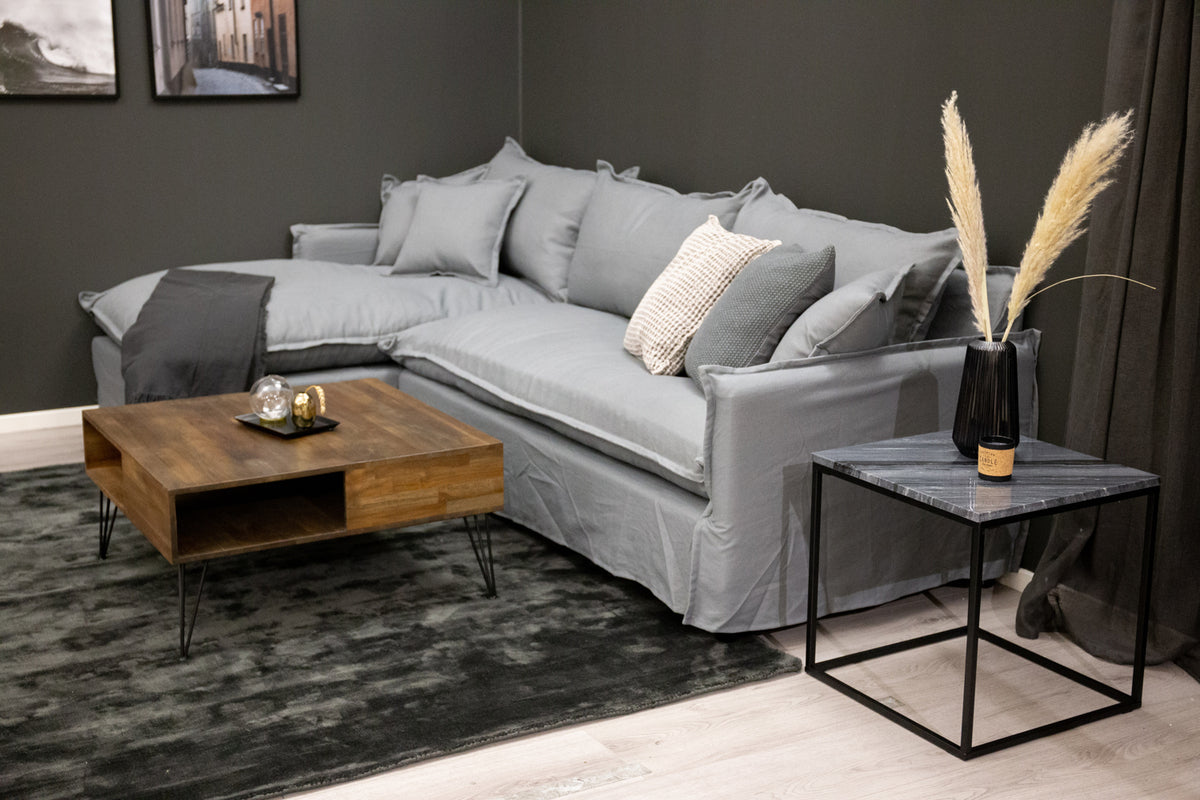 Bali er et smukt og stilrent sofabord, der holder over tid! Bordet er i en varm og mørk teak, som skaber et hjemligt og varmt indtryk i stuen. Benene er i sort stål med en dekorativ udformning. Med sofabordet Bali får du både et smukt design og en praktisk opbevaring med smarte huller, som delvist dækkes af bordet.