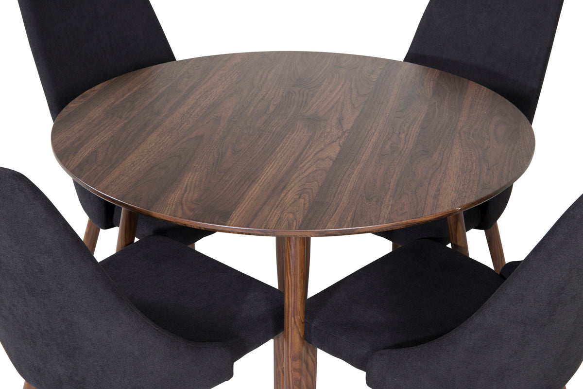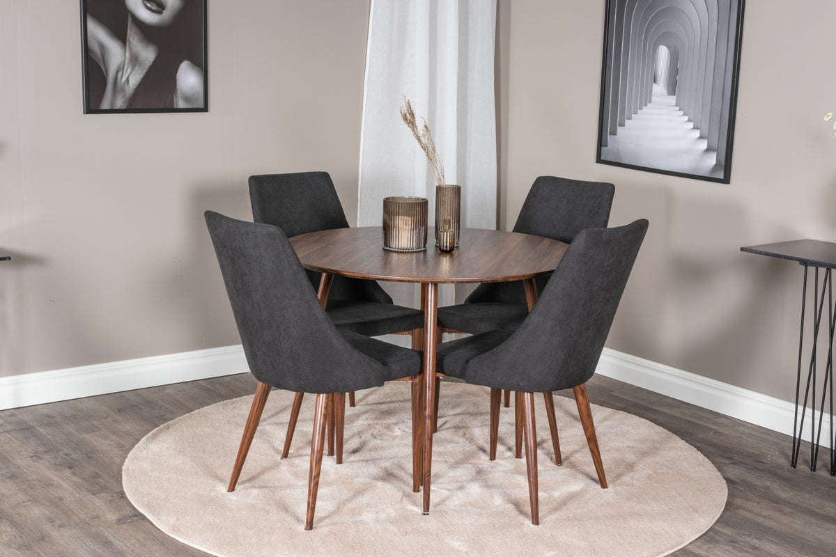 Spisebordsstol 2-pak Sort + Rundt Spisebord 100 Valnød