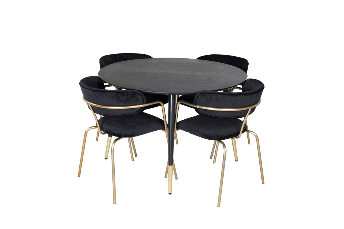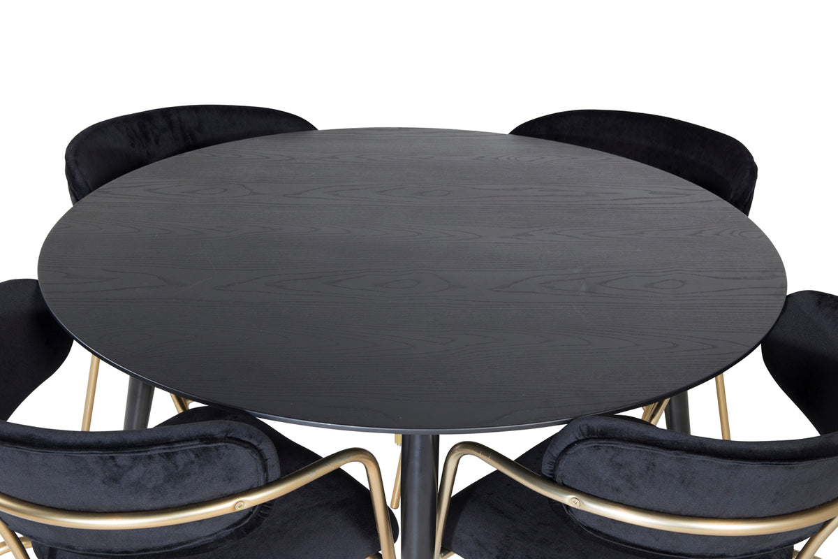 Spisebordsstol 2-pak Sort + Rundt Spisebord 115 Sort
