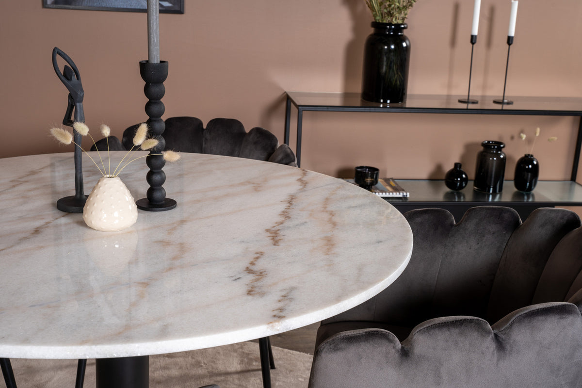Denne spisegruppe kombinerer et stilrent marmorbord fra Estell-serien og lækre stole fra Limhamn-serien. Skab noget stilfuldt og socialt med plads til god mad og hygge!