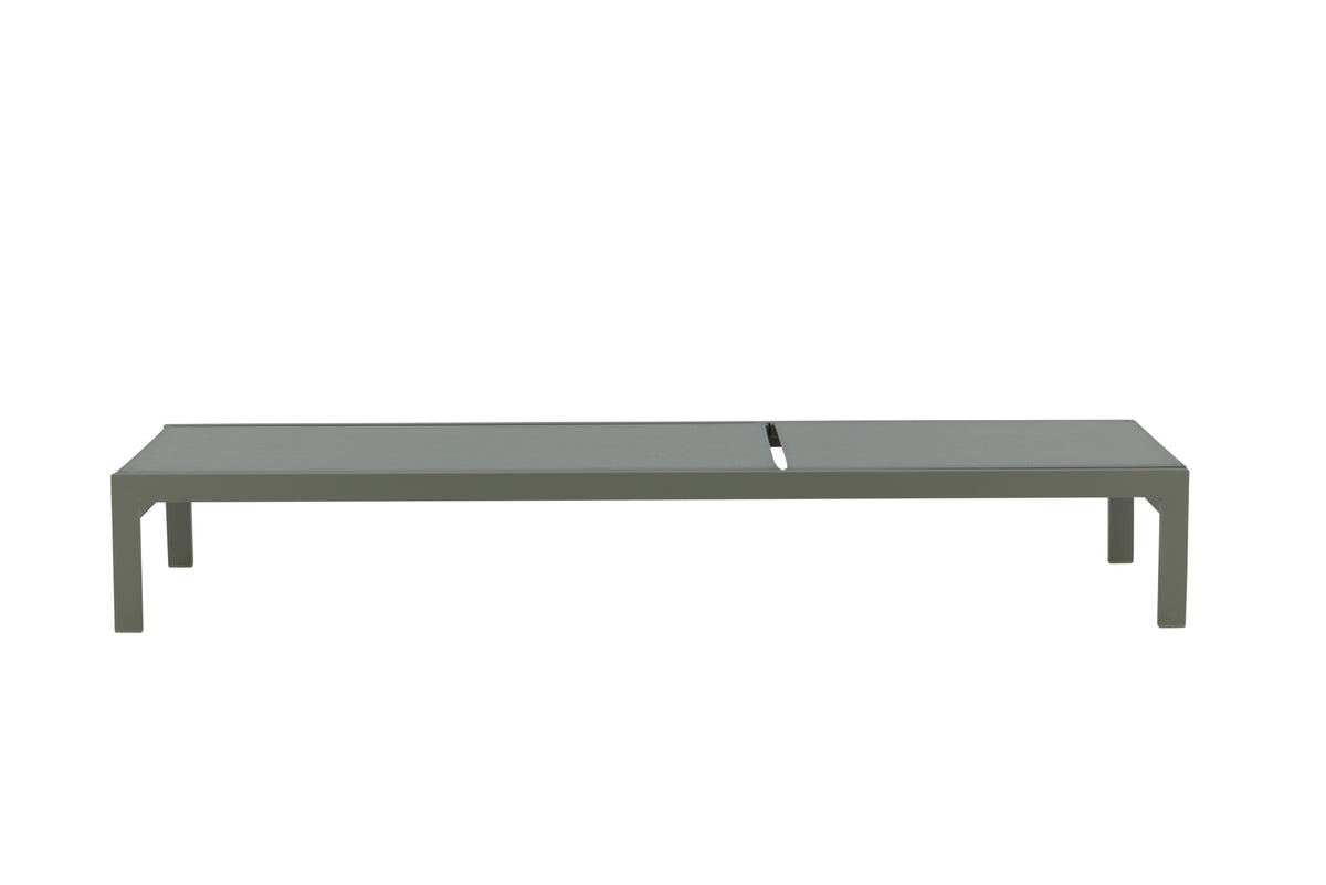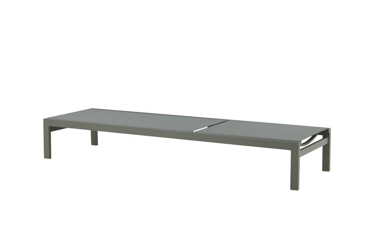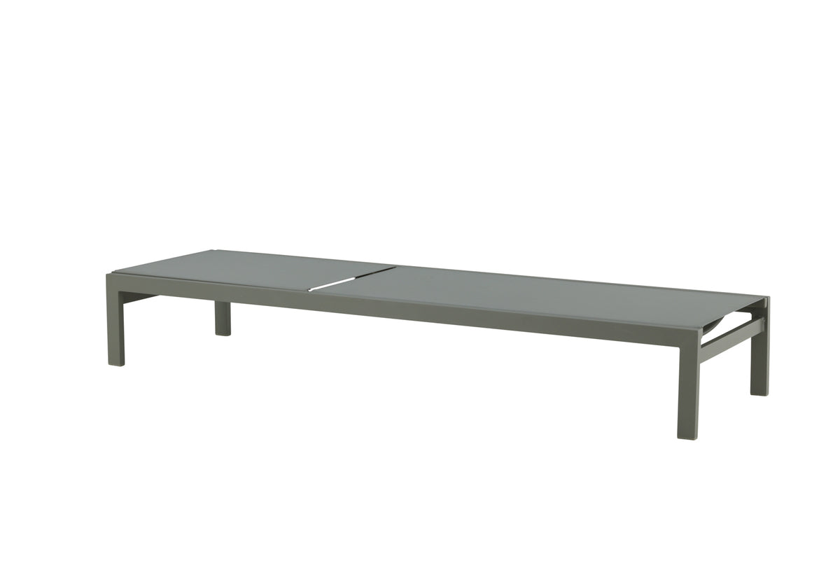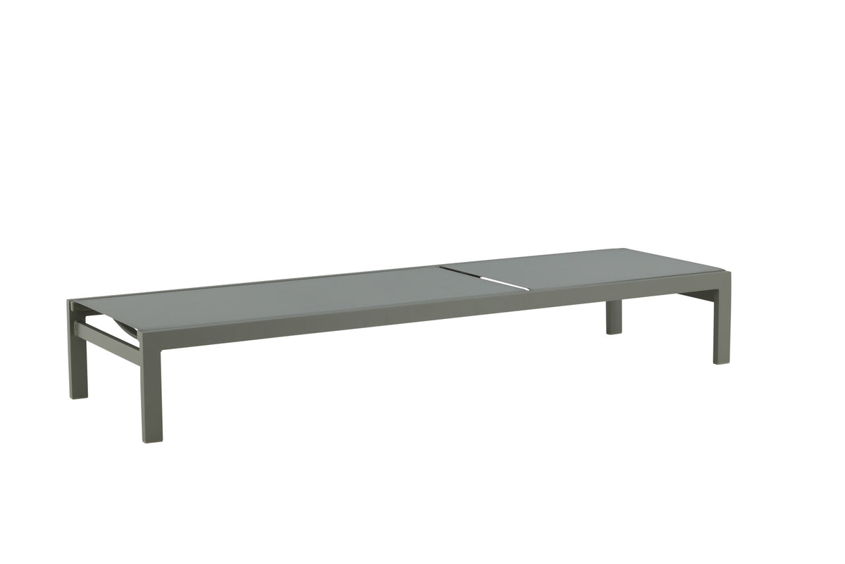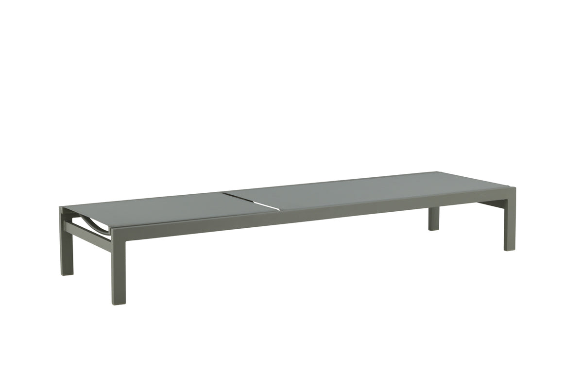 Klassisk solseng i grøn/khakilakeret aluminium. Solsengens ryglæn kan justeres – nyd en skøn lur eller sid behageligt og læs en god bog!