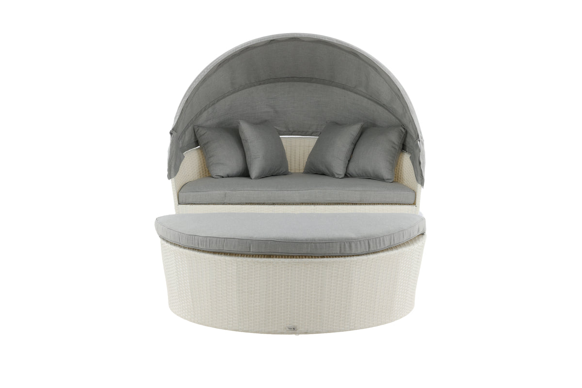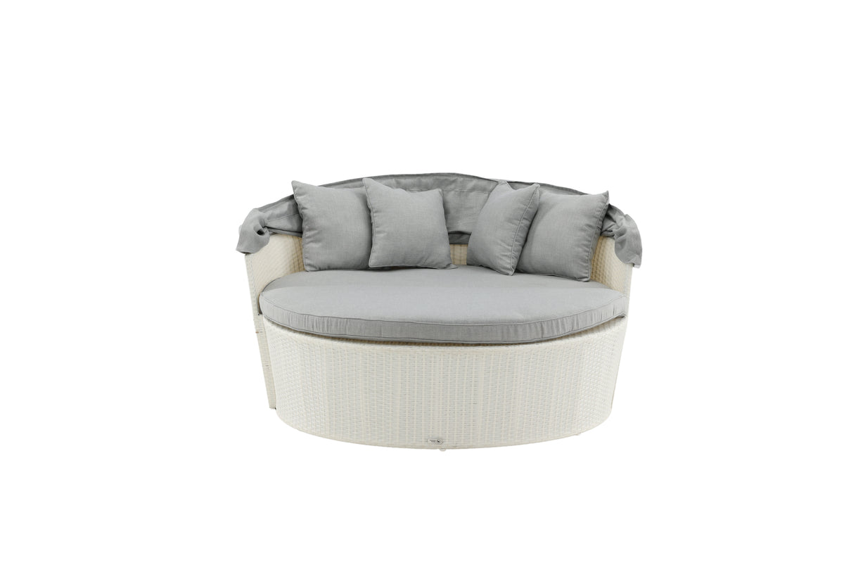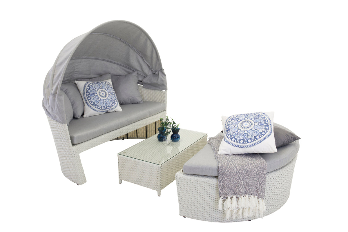 Padova, en luksuriøs solseng, der indbyder til mange afslappende timer i sommer. Den moderne farveskala og gennemtænkte design giver dig en funktionel og flot solseng. Med justerbar tagdel vælger du selv, hvornår du vil have sol og skygge - praktisk, nemt og bekvemt! Stellet er fremstillet af hvid polyrattan med tilhørende lysegrå, bløde hynder. Følg vores tips til vedligeholdelse, så får du et slidstærkt udendørsmøbel, der holder længe!