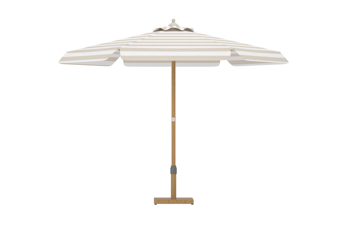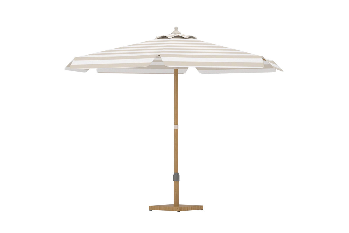 Cerox er en stilfuld parasol, der kombinerer klassisk design med moderne følelse. Den stribede dug i lyse toner skaber et friskt og tidløst look, der gør sig lige så godt ved spisegruppen som ved solstolen. Med sin generøse størrelse giver parasollen en behagelig beskyttelse mod solens stråler og forvandler terrassen til en sval og indbydende oase. Den robuste stang med træ-look forstærker det elegante udtryk og gør parasollen til en smuk detalje i alle udendørs miljøer. Med Cerox parasol får du både praktisk solbeskyttelse og en stilren atmosfære til sommerens alle lejligheder. Parasolfod købes separat.
