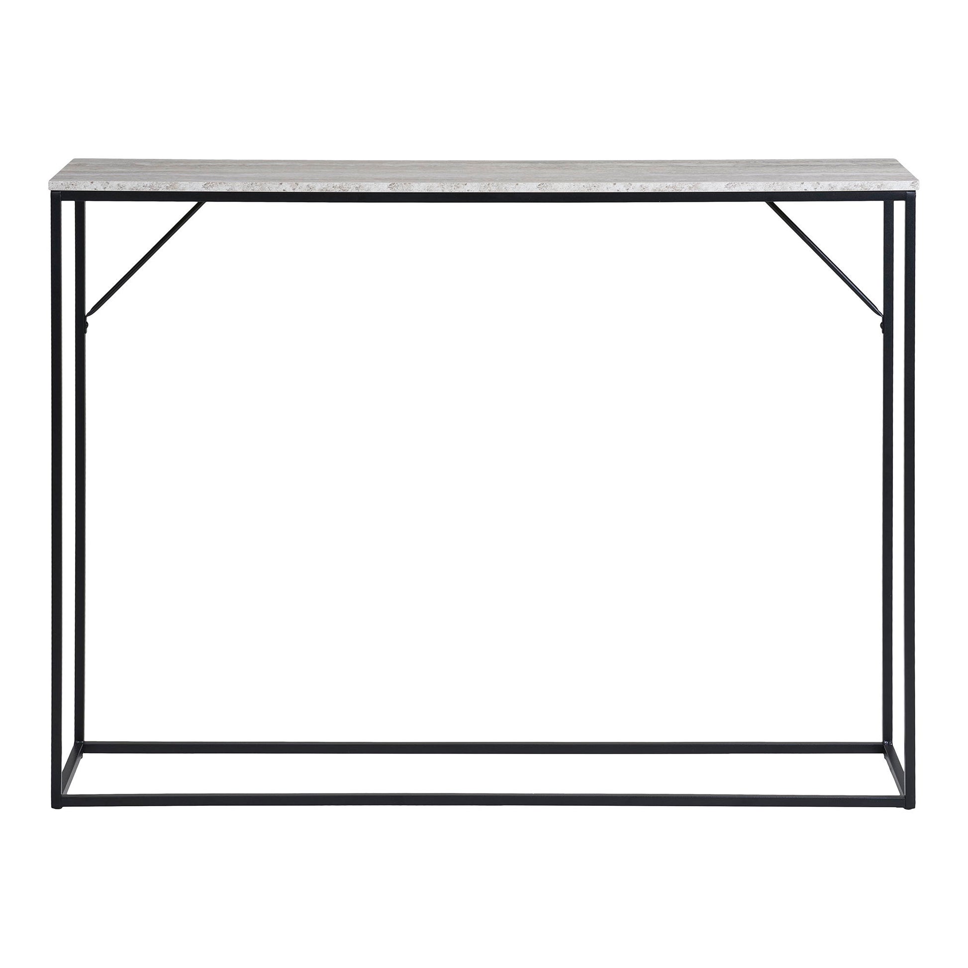 Konsolbord, 1 hylde, travertin look, sort stel\n110x26x80 cm